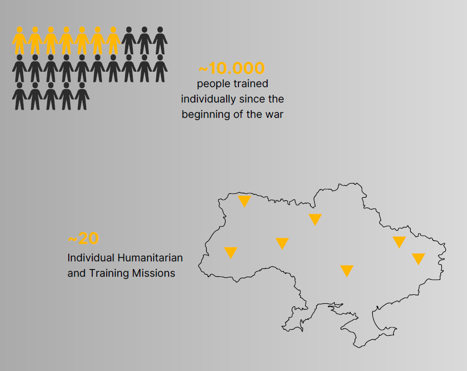We offer Tailored solutions in the fields of Humanitarian, Tactical, and Medical. Volunteer based training concepts for Ukrainian civilians, Military, Law Enforcement, and other essential emergency services, frontline medical work and humanitarian deliveries.